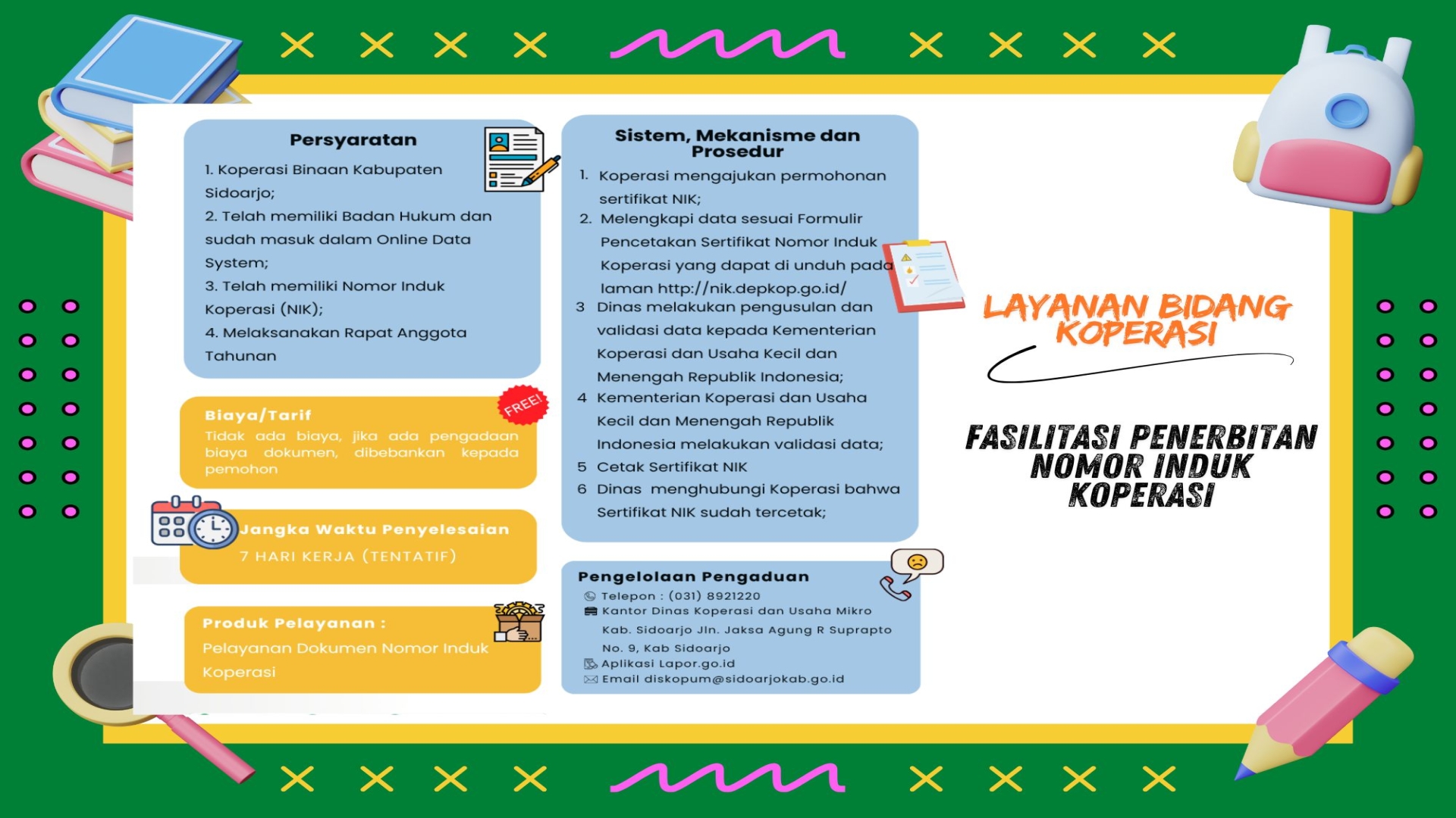 Dinas Koperasi dan Usaha Mikro merupakan salah satu Perangkat Daerah Teknis di Lingkungan Pemerintah Kab. Sidoarjo. Berdasarkan Peraturan Bupati Nomor 14 Tahun 2022, Dinas Koperasi dan Usaha Mikro memiliki tugas dan fungsi yaitu urusan terkait Koperasi dan Usaha Mikro